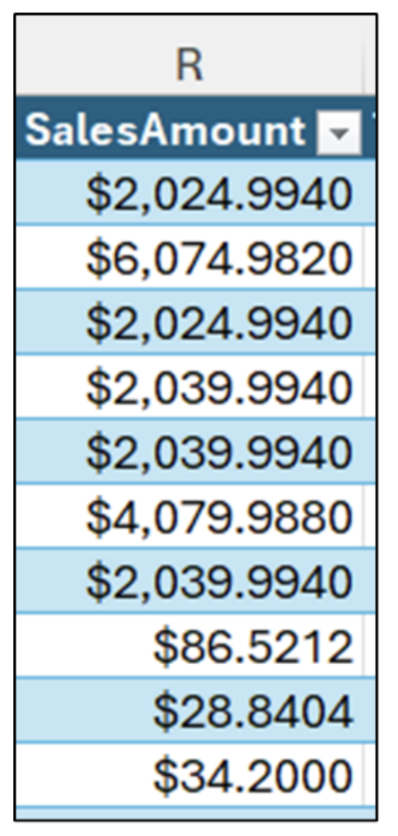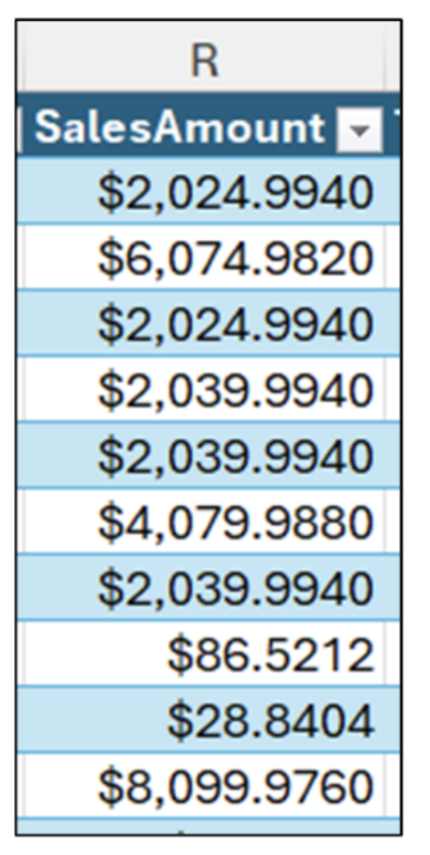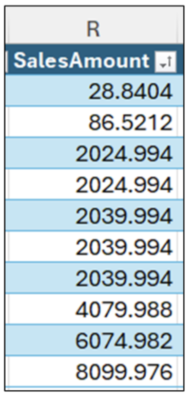 Consider the following 10 numbers. These numbers are drawn from the ResellerSales table in this blog post’s Excel workbook:
