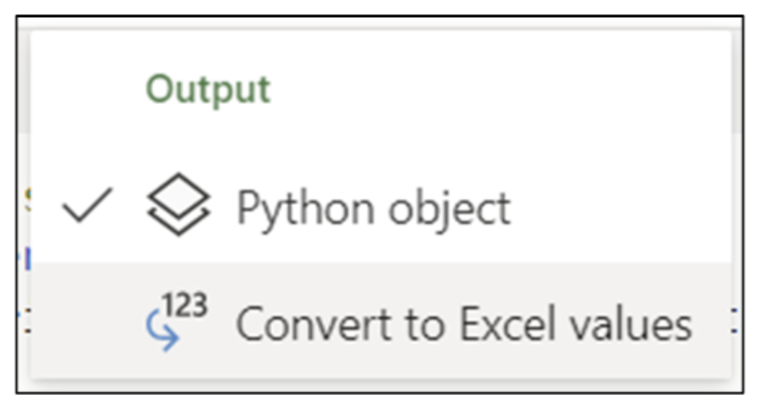 Clicking on the downward arrow in the Python Editor for the cell allows for selecting the Convert to Excel values option. Using this option renders the box plot inside the worksheet cell: