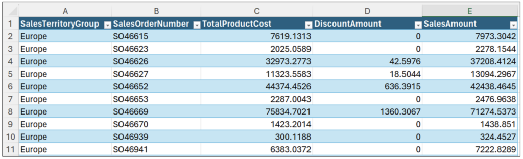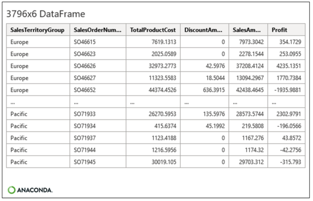 Executing the code shown in Fig 12 produces the updated reseller_orders DataFrame: