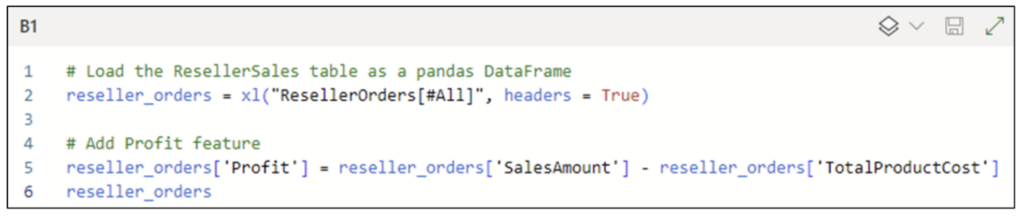 The dataset currently doesn’t contain profits. The following code loads the Excel table as a pandas DataFrame and adds a Profit column.